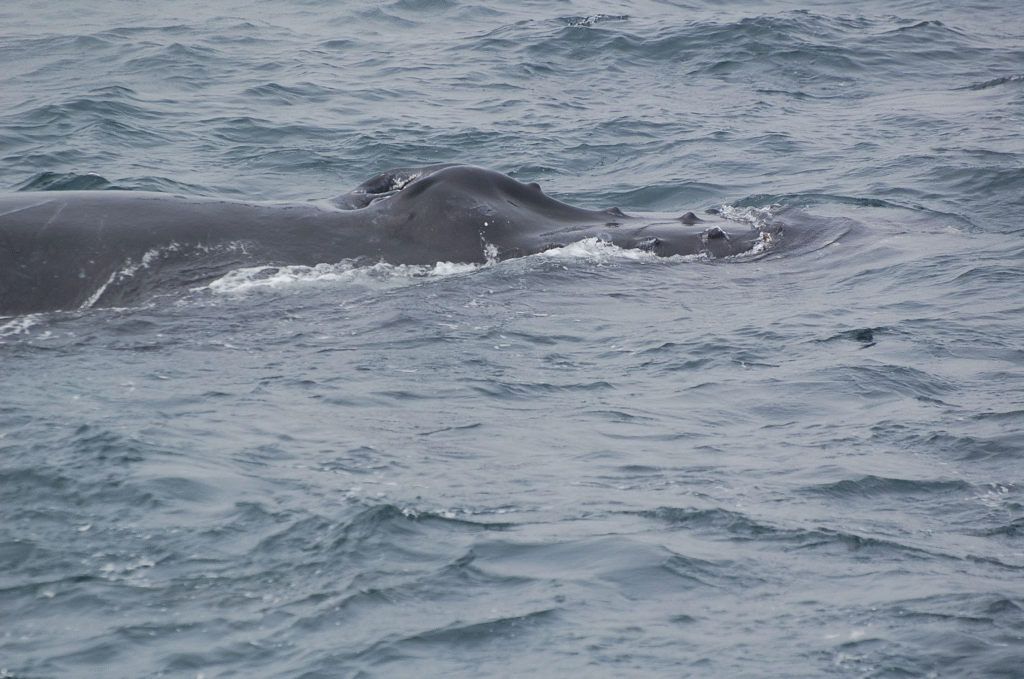The two photos show some of the bumps Humpbacks have around their chin and along the top of the their head. These are call tubercles and each one has a hair at its center, which is part of why they are classified as mammals. Why do they have the bumps and why is there a hair there? We don’t really know, but the bumpy nature of their heads adds to their distinctiveness.