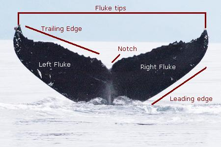 The Humpback’s tail fluke has a few distinctive features as well. The top, or dorsal, side is mostly dark gray a notch at the center divide between the right and left fluke. The trailing edges will have a variety of markings, some of which will last through the whales life, while others will change, and new ones appear as the whale grows, encounters fishing gear, or predators who leave teeth marks, and circular barnacle scars. The pigmentation and markings on the under side of the tail fluke are distinctive enough to serve as Identification marks for individual whales. After 50 years of collecting photos, we now have multiple catalogs of ID photos for various Humpback populations around the world. There are a growing number of catalogues for other whales as well. As the technology to process and match the millions of photos being taken and uploaded has increased,so has our understanding of where and when these whales travel and even who they travel with year after year.