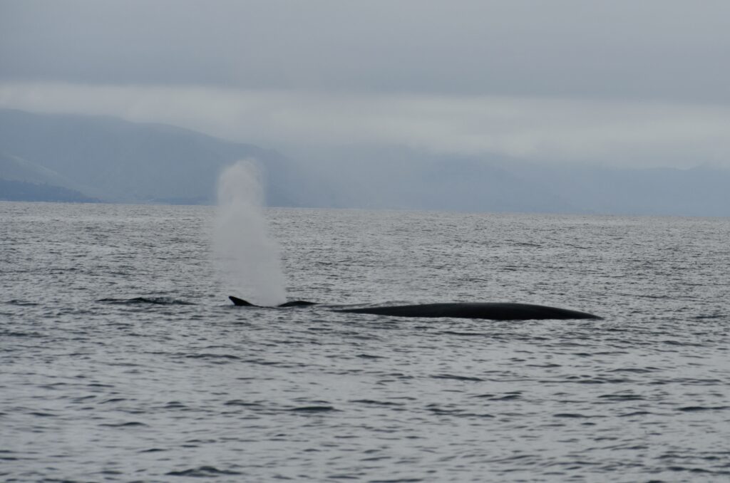 Since whales are mostly eating and hanging with friends or family in Monterey Bay, a lot of what we see from the boats are whales preparing to go down to where their food is and coming back up to breathe and rest. Having seen mostly Humpback whales on my trips, I’ve gotten familiar their version of that process. Finn whales are a little different.
