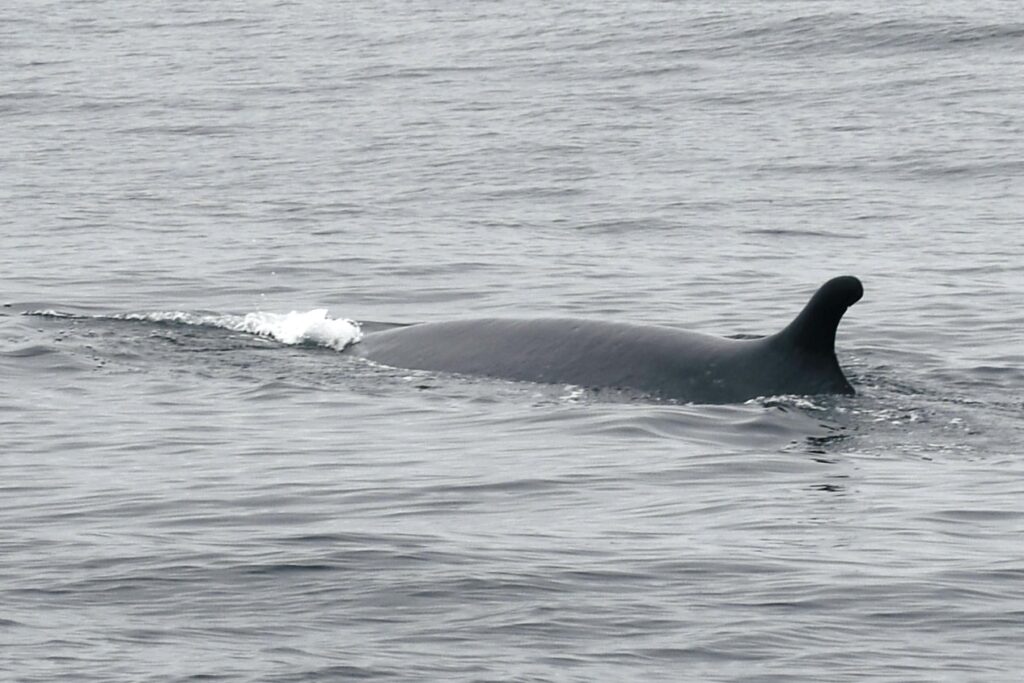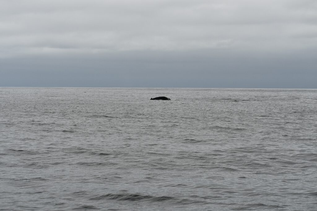 Fin whales are mostly gray on top with only their small, pointed dorsal fin, its easy for them to blend in with the water and sky. They can be hard to differentiate for the surface water and from the boat I found it hard to process just how large they were. If you’ve ever wondered why whales get hit by boats (aside from people not knowing and/or obeying the speed and distance rules), this is part of the issue. When a being who’s coloration closely resembles the water they live in, and the have a very low profile when at the surface, they can end up looking like logs, shadows, or even debris. They are be hard to see if you don’t know what to look for, and even sometimes when you do.